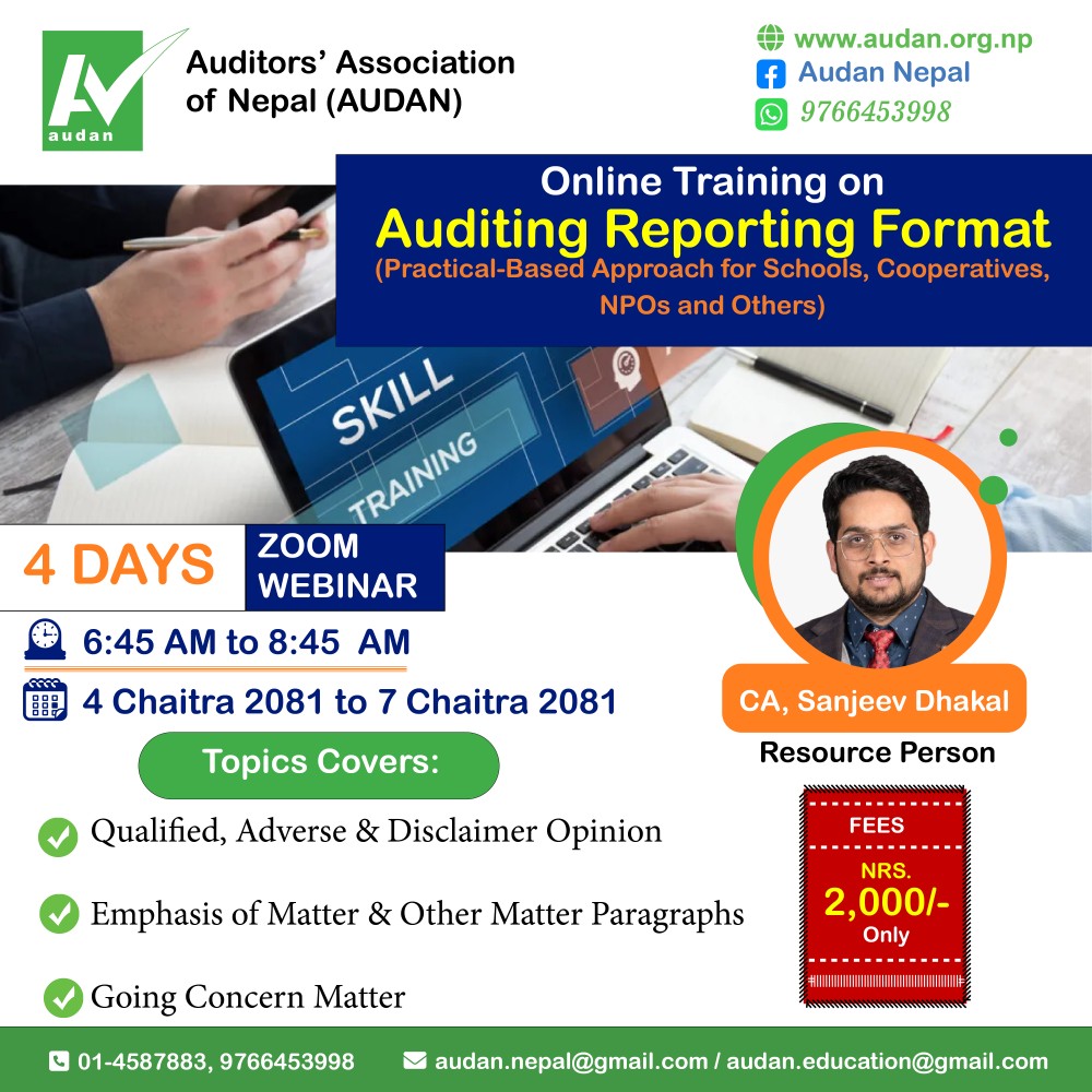 4 Days Online Training on Auditing Reporting Format (Practical-Based Approach for Schools, Cooperatives, NPOs and Others)
