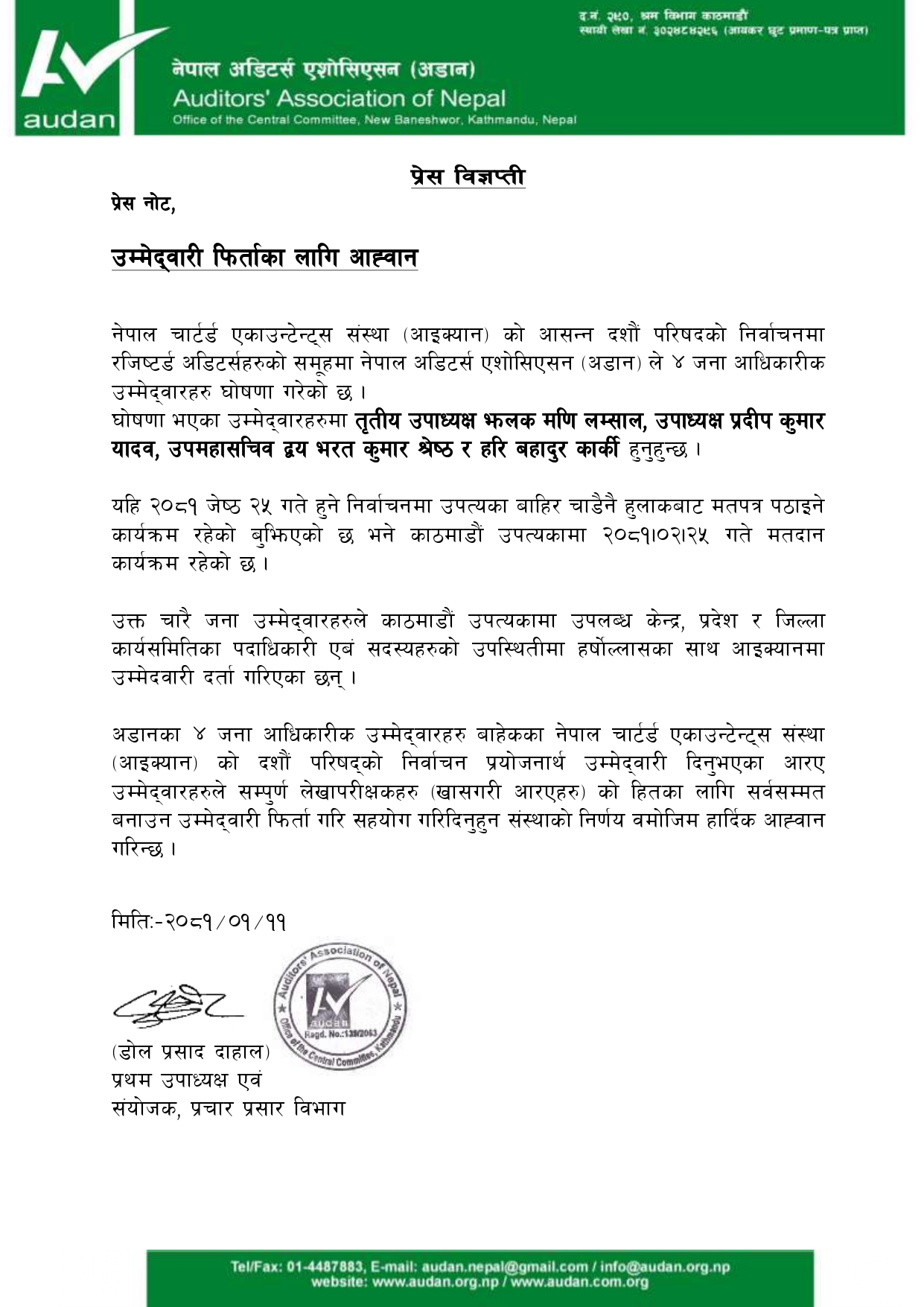 प्रेस विज्ञप्ती